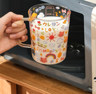 水杯耐高温玻璃杯家用刻度早餐杯牛奶杯女大容量喝水杯子