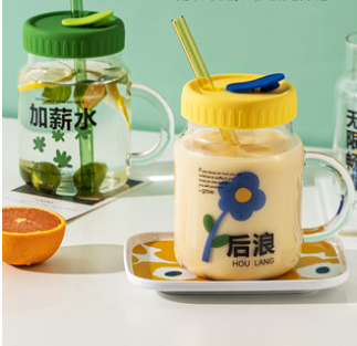 大容量杯子女生夏季玻璃水杯家用果汁杯奶茶杯刻度吸管杯