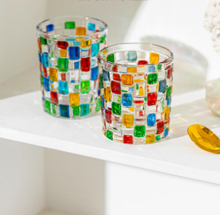水杯家用高级感杯子女ins手绘彩色啤酒杯设计小众玻璃杯