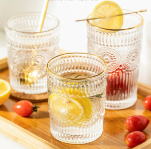 玻璃杯浮雕家用水杯套装女ins风金边夏季太阳花咖啡杯子