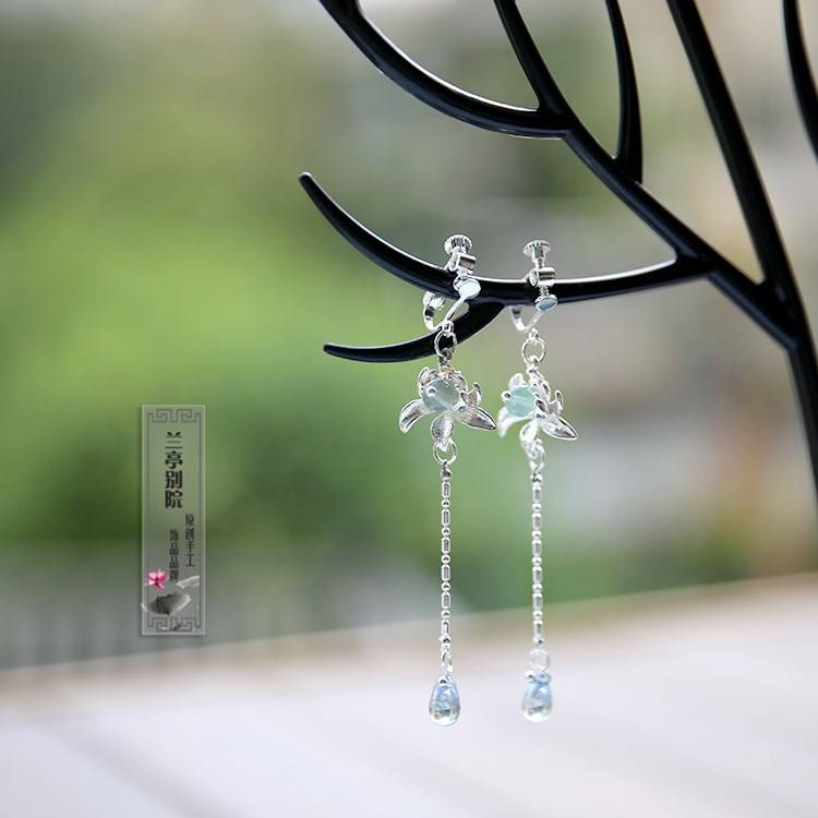 白露生 耳环 复古手作森女系清新耳饰 古典耳夹汉服饰品 兰亭别院