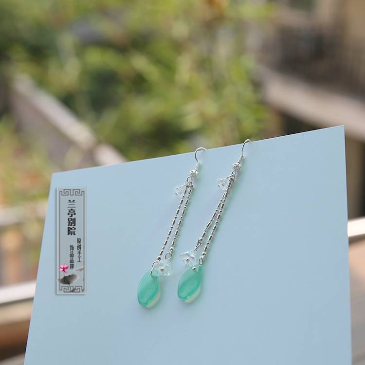清音 清新淡雅绿色长款 花瓣耳环 复古汉服耳饰 兰亭别院手工作