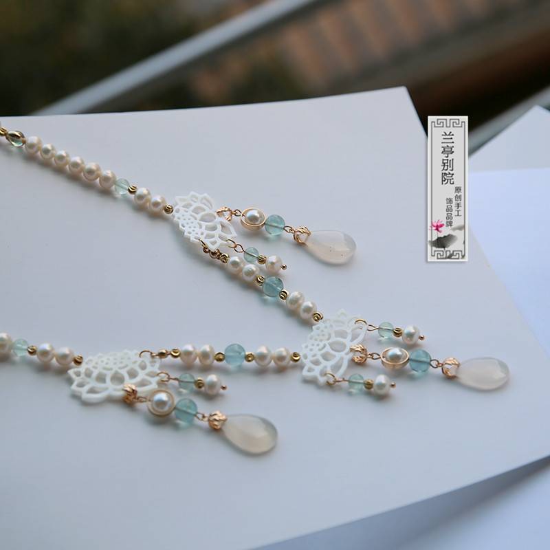 濯尘清新优雅长款莲花萤石耳坠汉服古风耳饰品原创手工作兰亭别院