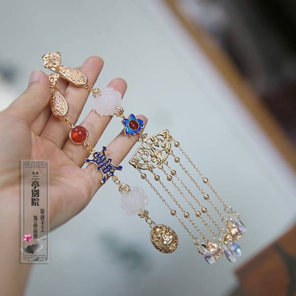 复古 烧蓝压襟手作 明清服饰配饰 汉服旗袍 可用胸挂 兰亭别院