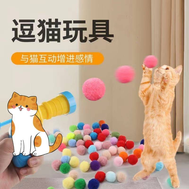 逗猫玩具毛绒球发射枪高弹毛球静音互动自嗨解闷宠物玩具