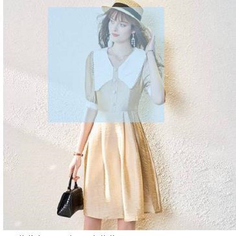 欧货时尚洋气娃娃领连衣裙女2021年夏季新款 气质收腰泡泡袖a字裙