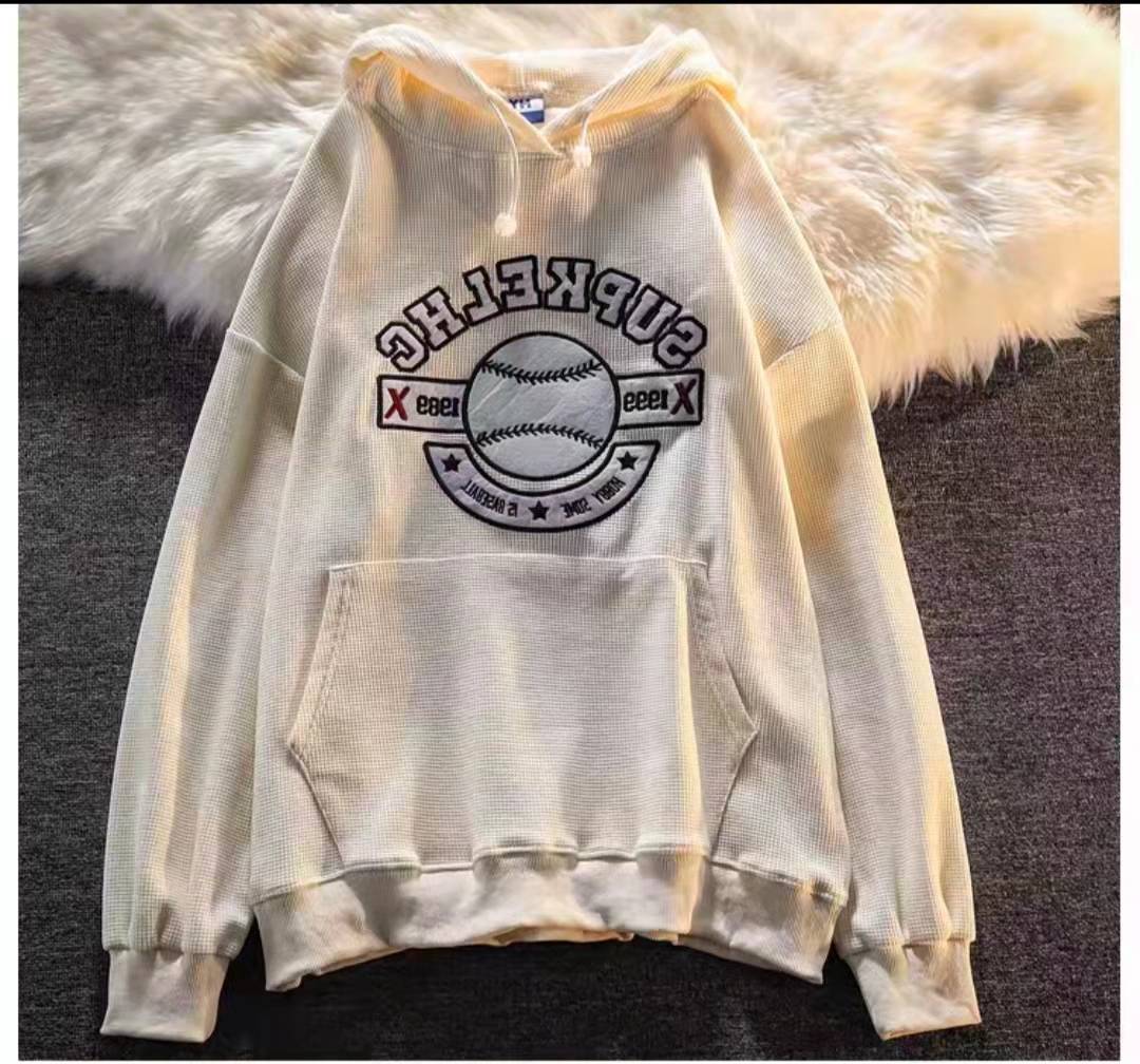 美式复古街头棒球卫衣女秋冬宽松连帽设计感小众oversize潮牌外套