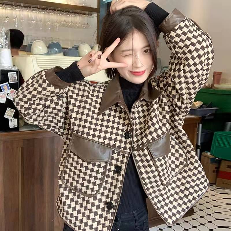 格子短款外套女装秋冬季百搭2021新款法式复古设计感小个子ins潮