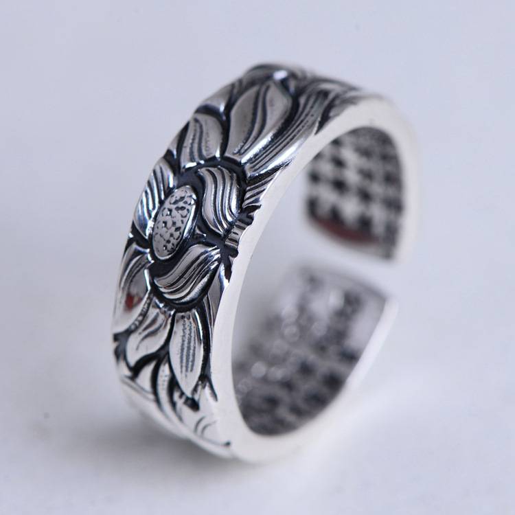 男款戒指S999心经仿古莲花情侣戒指开口佛教饰品饰品男女 简约