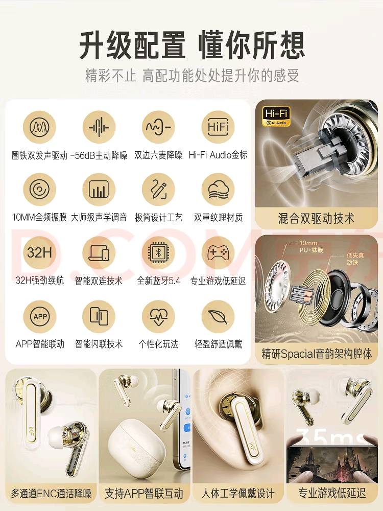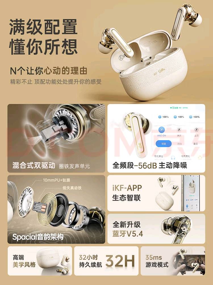 iKF Ultra圈铁降噪真无线蓝牙耳机HiFi高音质ANC主动降噪入耳式蓝牙耳机发烧超长续航25年新款云岩白订金