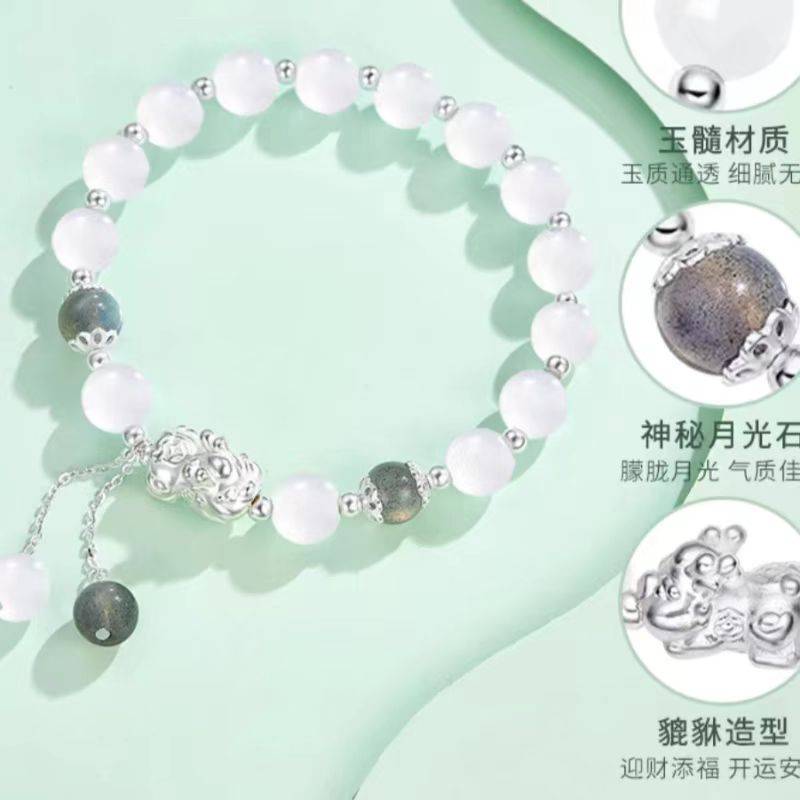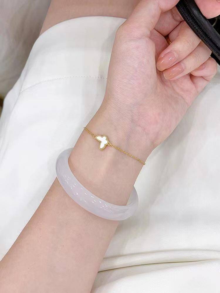 冰透白月光 天然白冰玛瑙手镯高冰香槟金色扁条马料冰种玉髓手镯 333.00 已售:0件