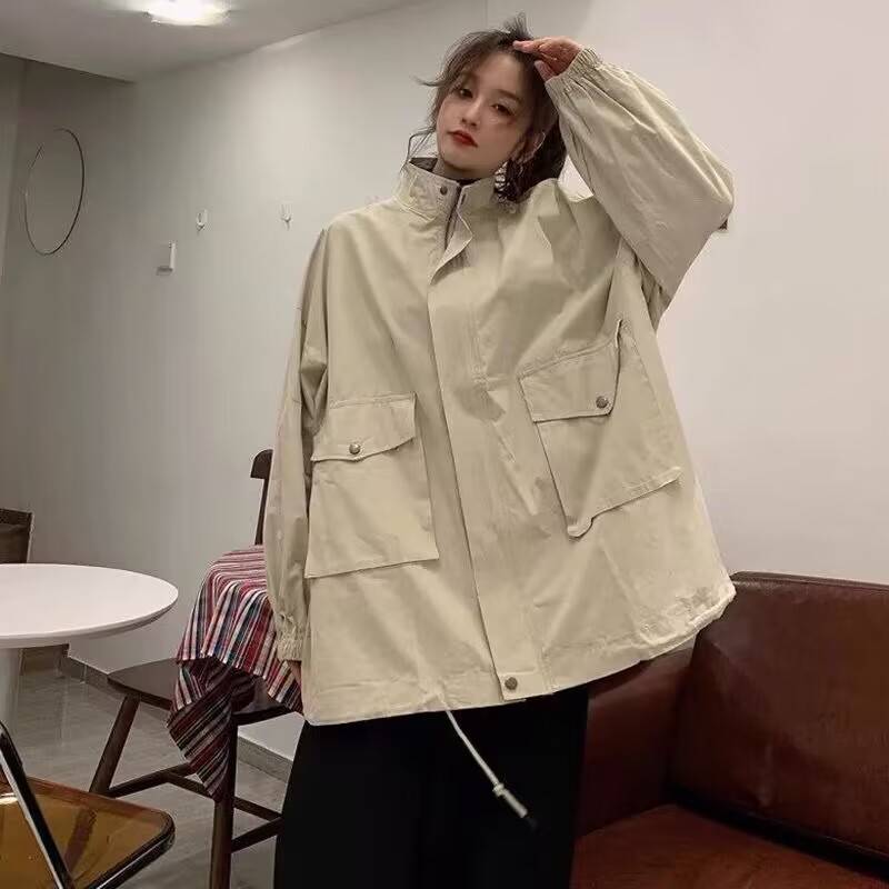 工装外套女春秋韩版新款港风百搭学生宽松夹克bf风衣大衣复古上衣