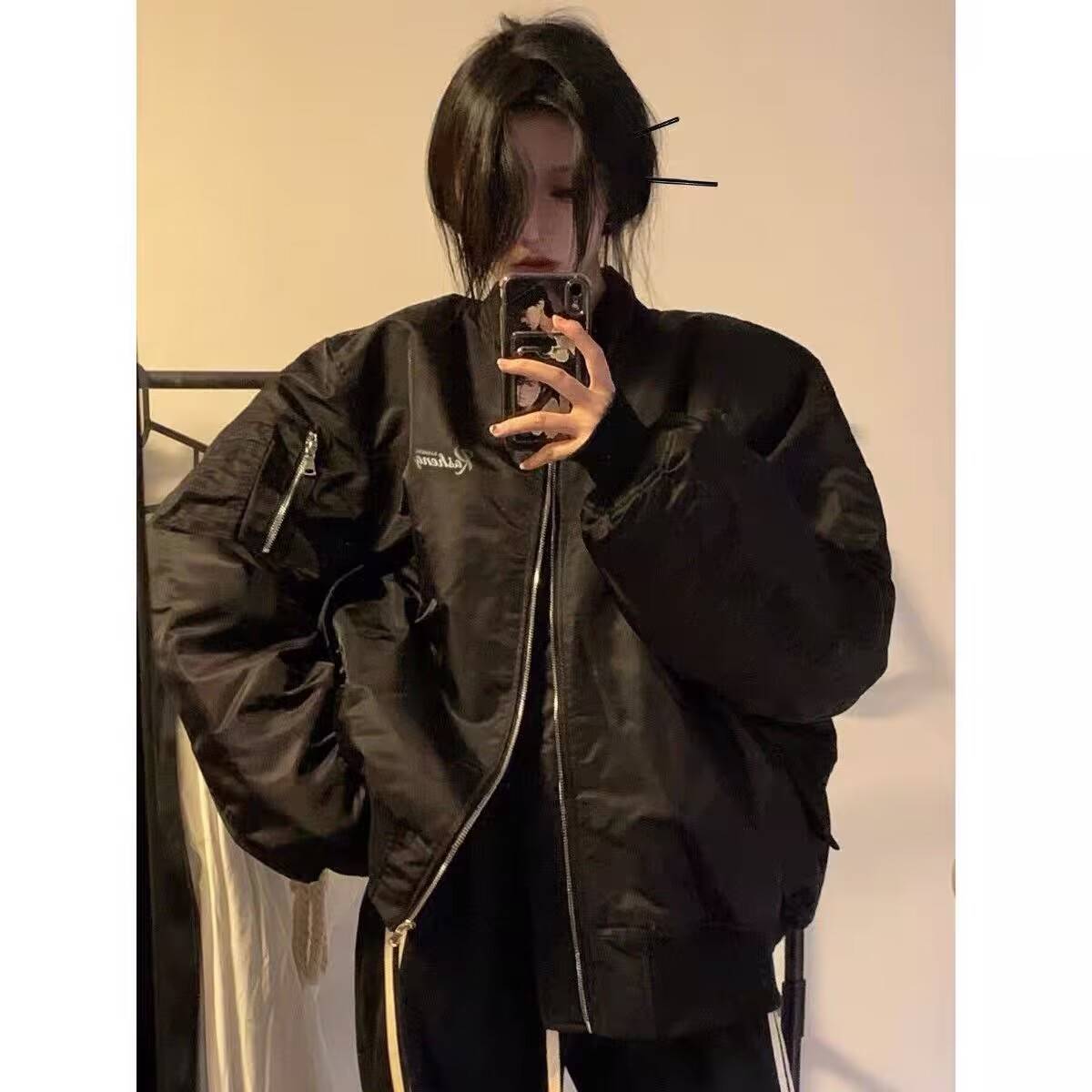 棒球服外套女秋冬加厚棉袄国潮美式vintage飞行员夹克情侣装棉服