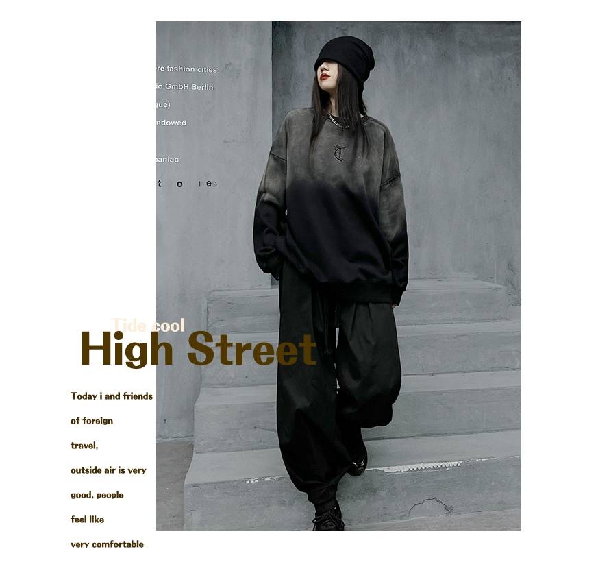 潮牌秋季渐变黑色加绒加厚运动卫衣