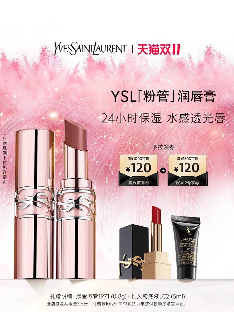 【双11大促】YSL圣罗兰全新粉管润唇膏 7B本色5B透光赤茶 388.00 已售:0件