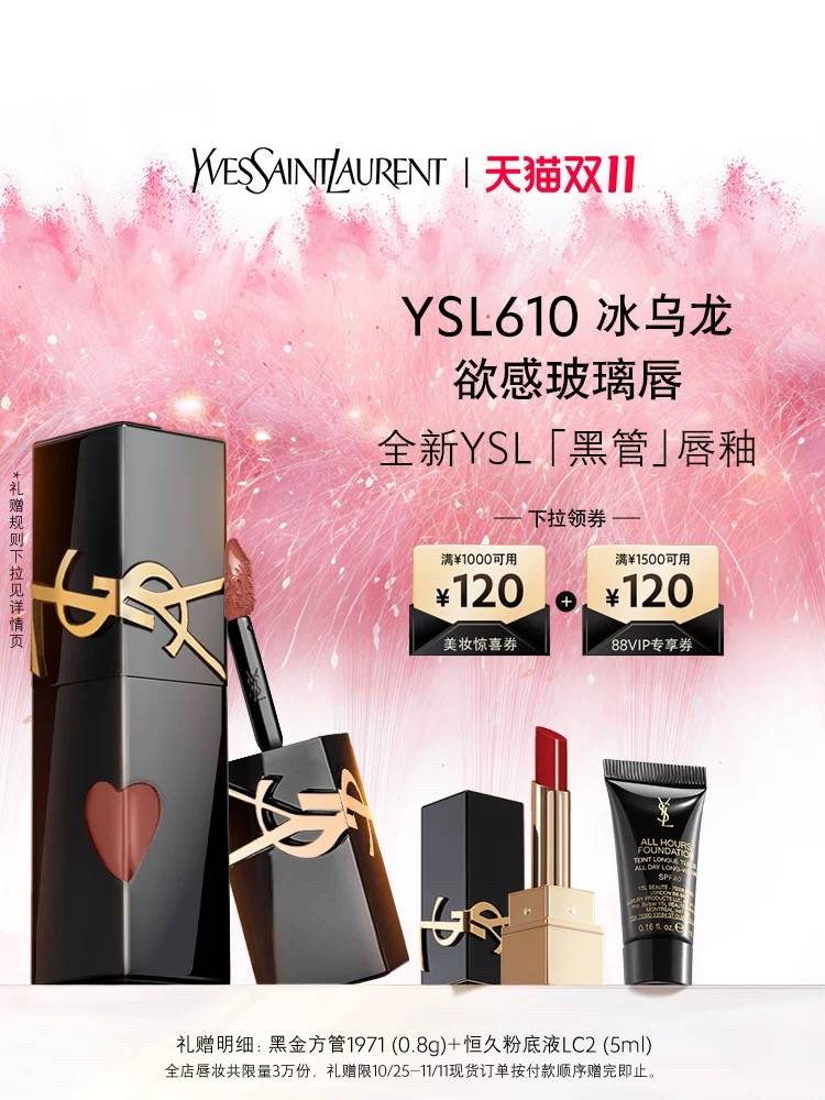 【双11大促】YSL圣罗兰全新黑管唇釉 610冰乌龙416欲望 366.00 已售:0件
