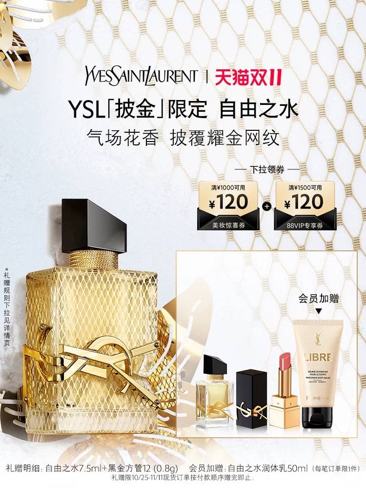 【圣诞限定】YSL圣罗兰LIBRE自由之水 披金限定香水气场花香持久 919.00 已售:0件
