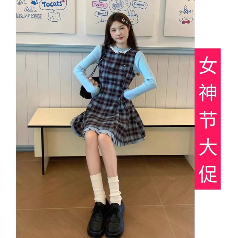 韩系学院风早秋穿搭套装2024新款小个子A字连衣裙chic甜辣两件套