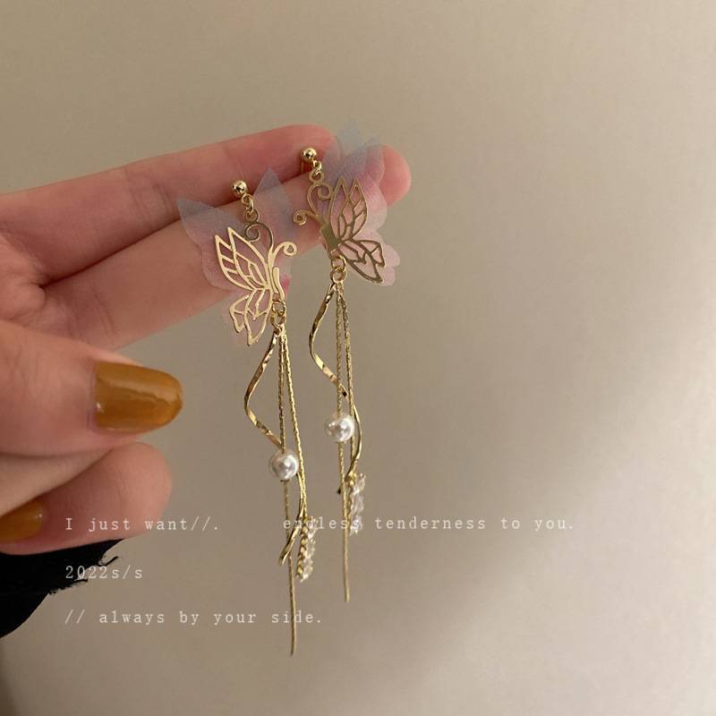 银针镂空蝴蝶锆石珍珠流苏耳环气质甜美耳钉耳坠ins小众新款耳饰 19.90 已售:0件