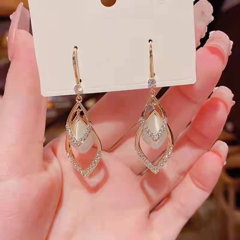 S925银针韩国简约猫眼石菱形耳环女新款潮气质小众几何镶钻耳饰潮 9.90 已售:0件