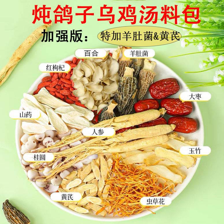 羊肚菌人参虫草花黄芪炖汤料女人气血滋补养生乌鸡鸽子药膳材料包