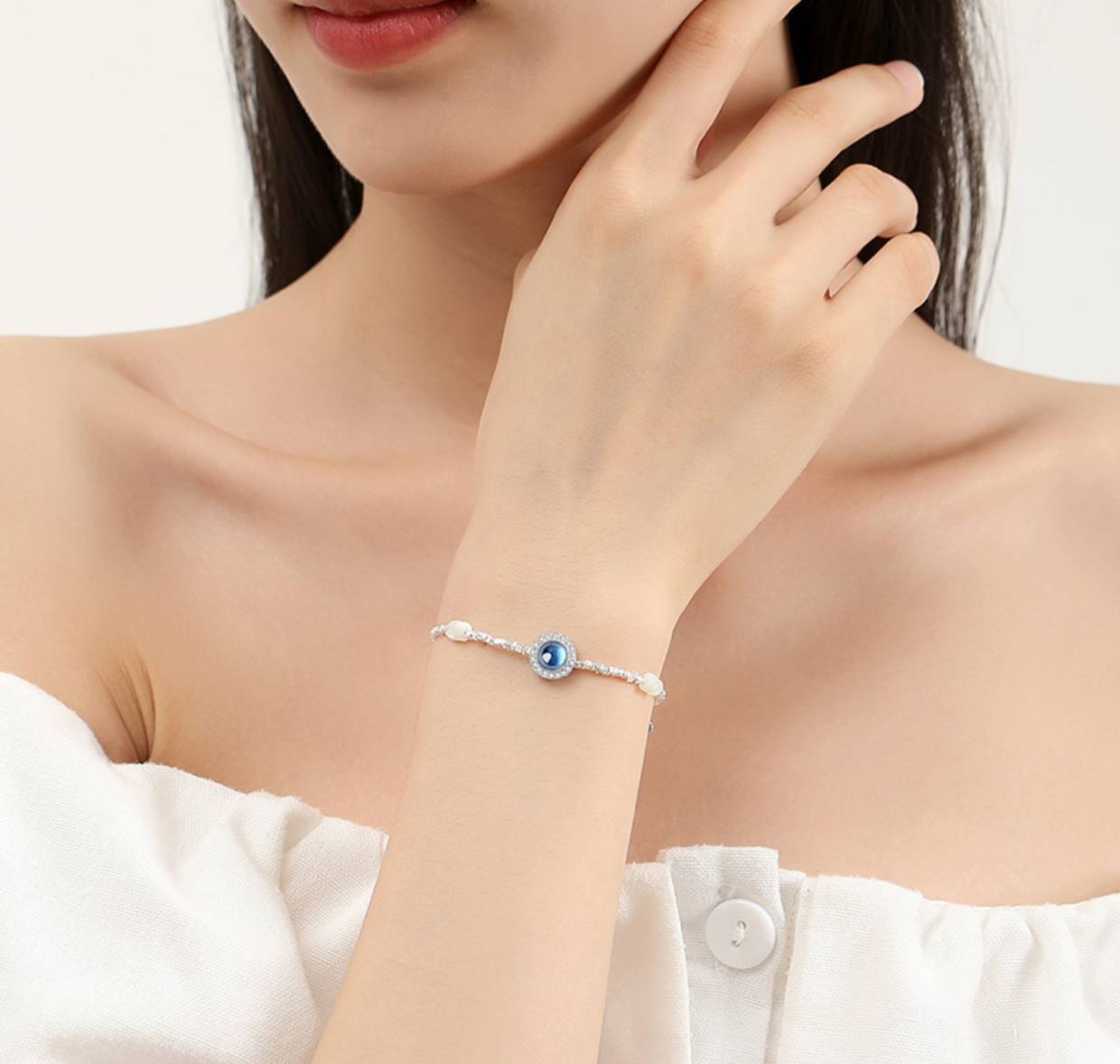 PARAS KORS PK蓝眼泪轻奢小众设计镶锆 饰品搭配母贝首饰S925银海蓝宝 手链女款