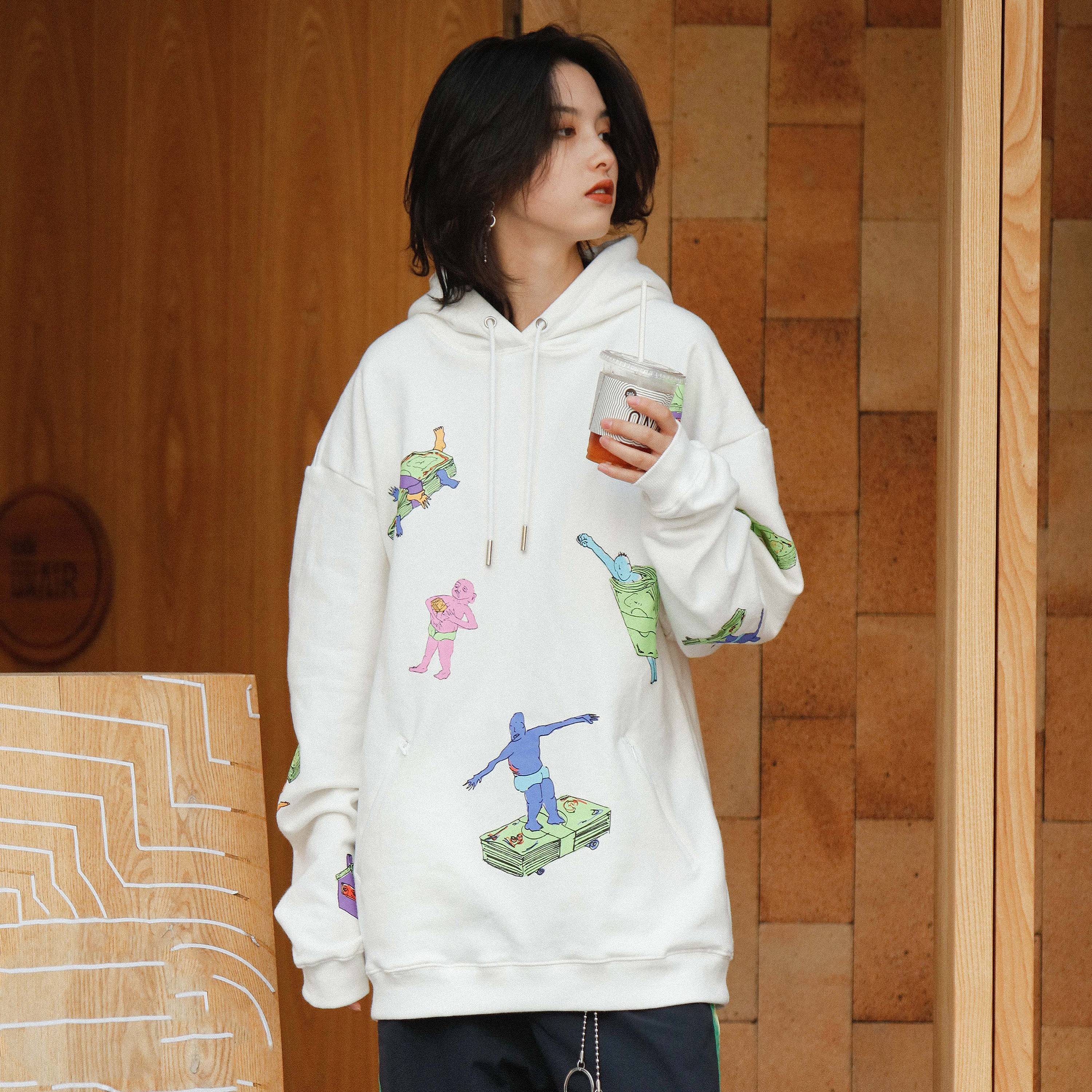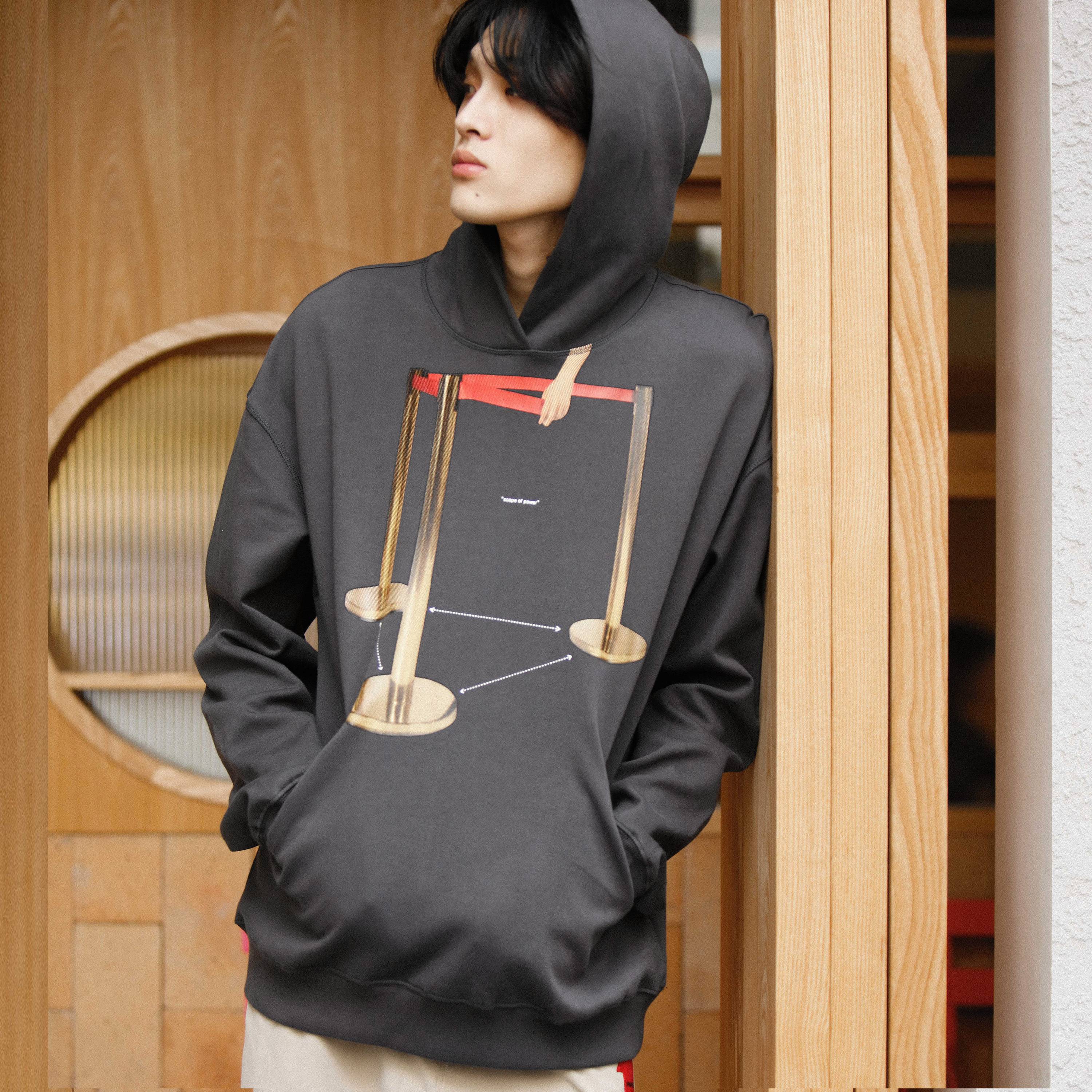 FMACM 2019SS 一米线印花套头连帽卫衣 春秋复古宽松落肩国潮上衣