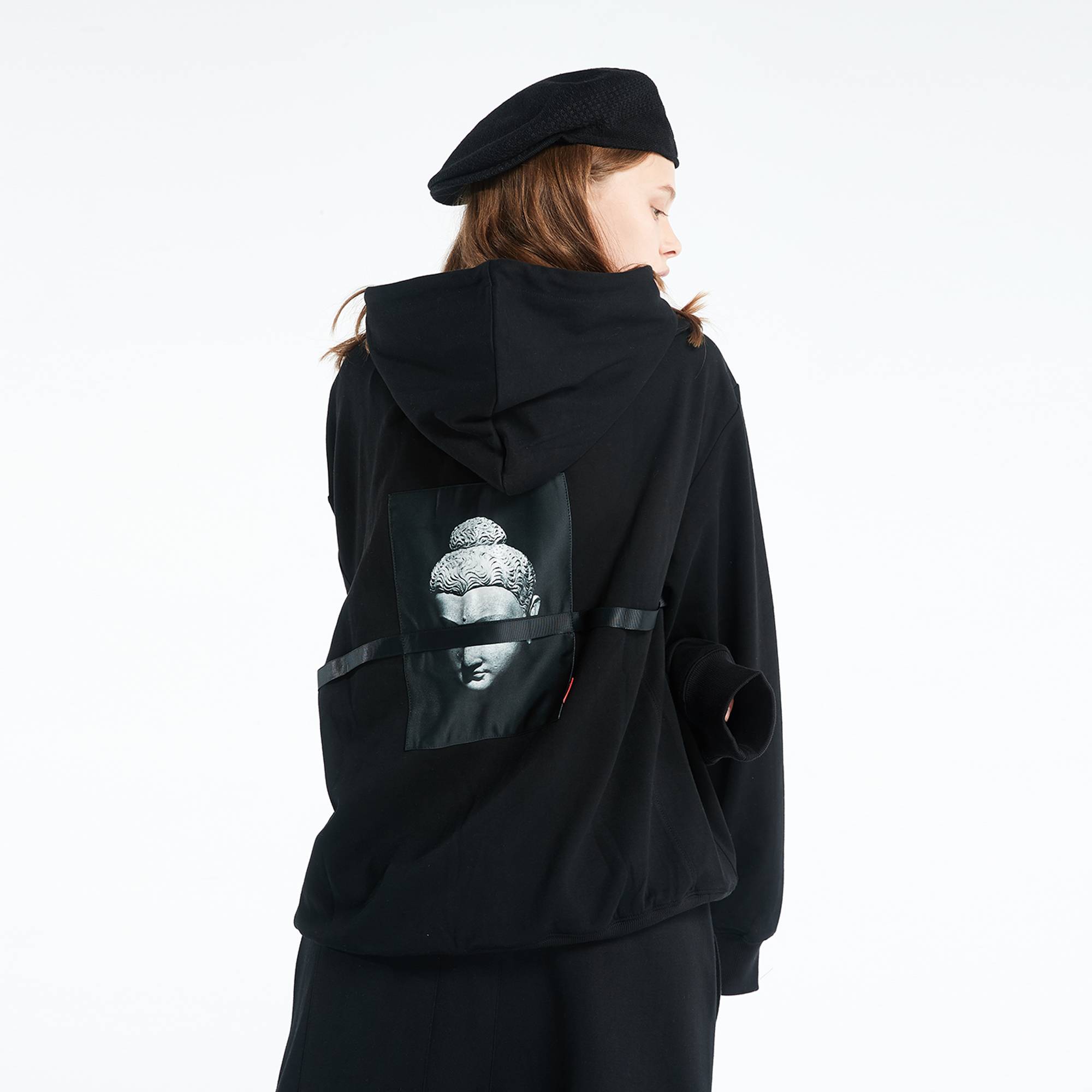 FMACM A/W 佛像印花套头带帽卫衣男女 佛头宽松简约情侣黑色上衣