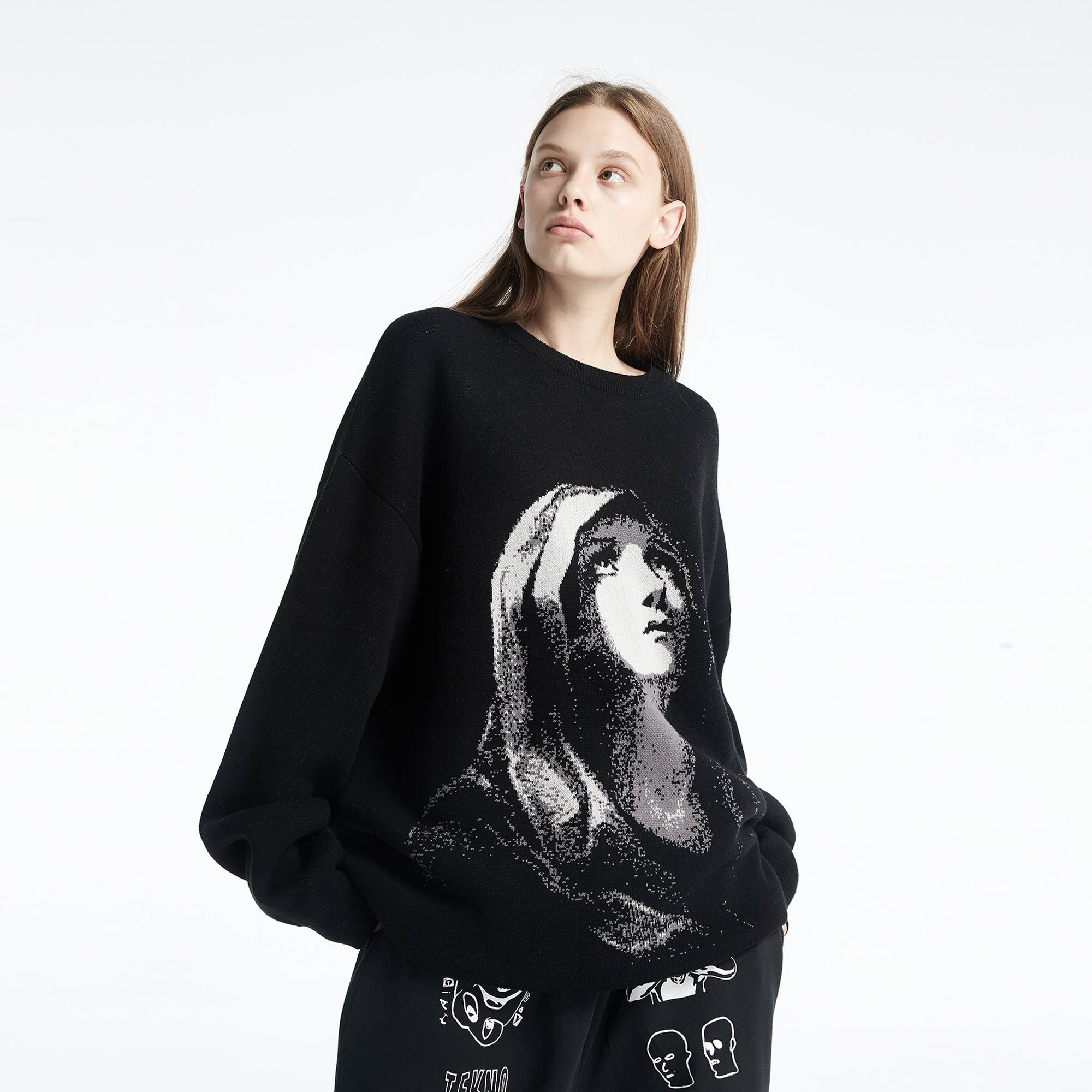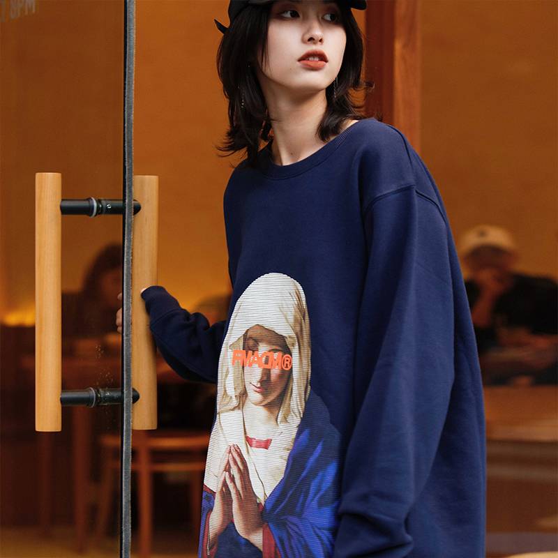 FMACM A/W 圆领套头圣母卫衣男女 宽松人物印花情侣春秋潮牌上衣