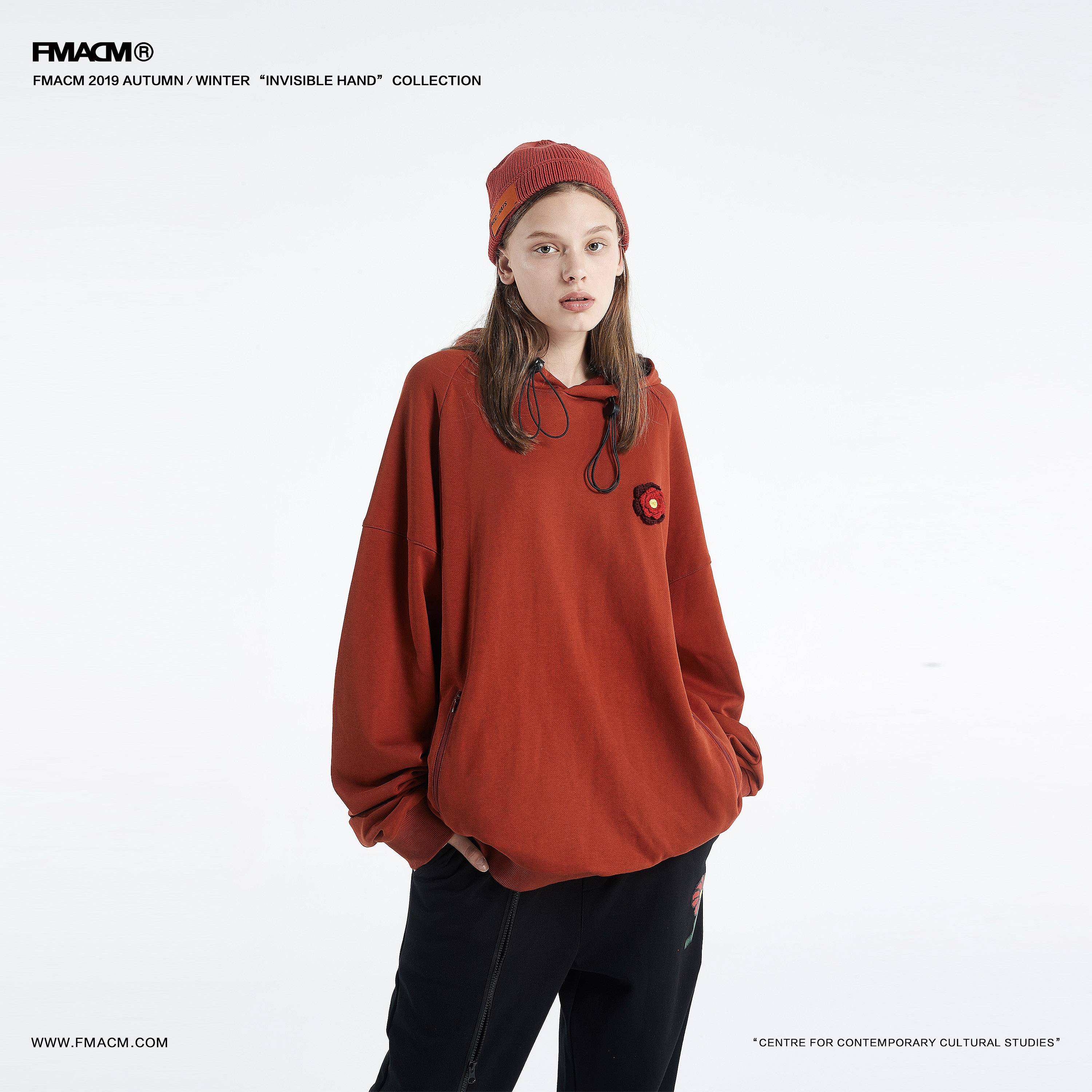 FMACM 插肩袖宽松连帽情侣纯色国潮卫衣小花外套男春秋新款帽衫