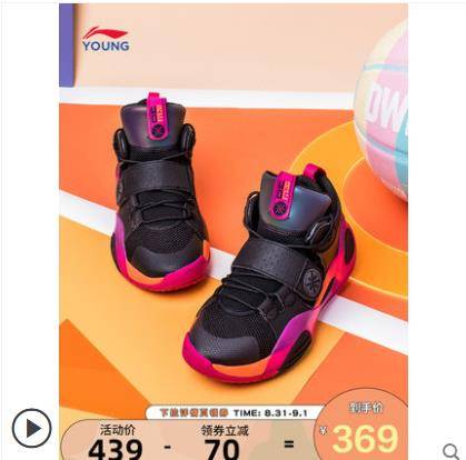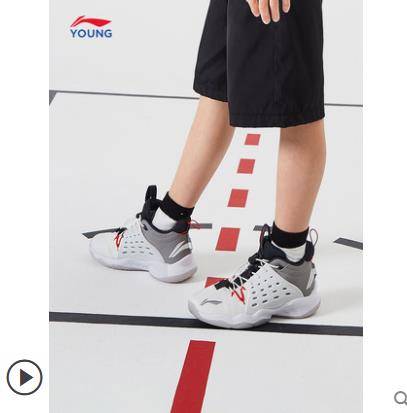 李宁童鞋篮球鞋男大童音速圆头鞋子室内外篮球鞋秋高帮运动篮球鞋