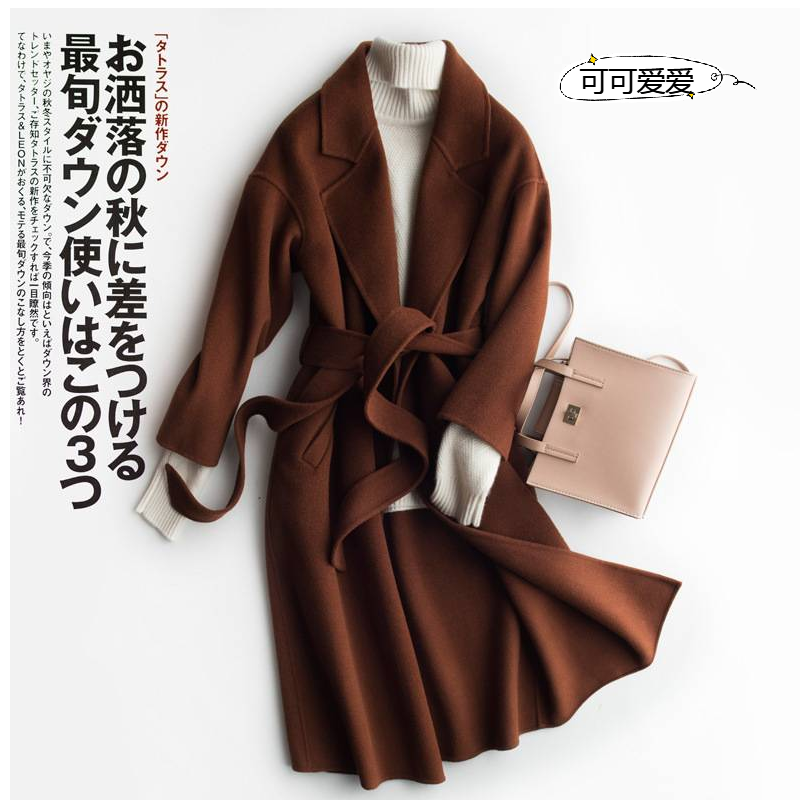 双面羊毛大衣女中长款2020新款赫本风黑色腰带秋冬毛呢外套西装领