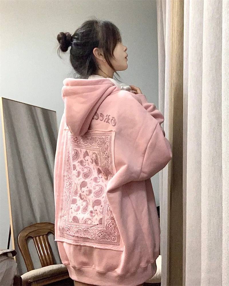 美式复古腰果花卫衣女秋冬ins宽松bf慵懒风加绒加厚chic港味上衣