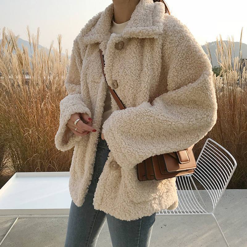 2019秋冬新款加厚棉服女宽松韩版羊羔毛外套女冬季学生毛绒绒棉衣