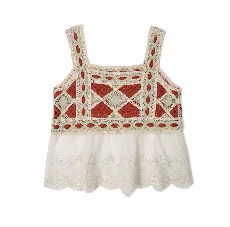 拼接棉布民族风吊带背心上衣
