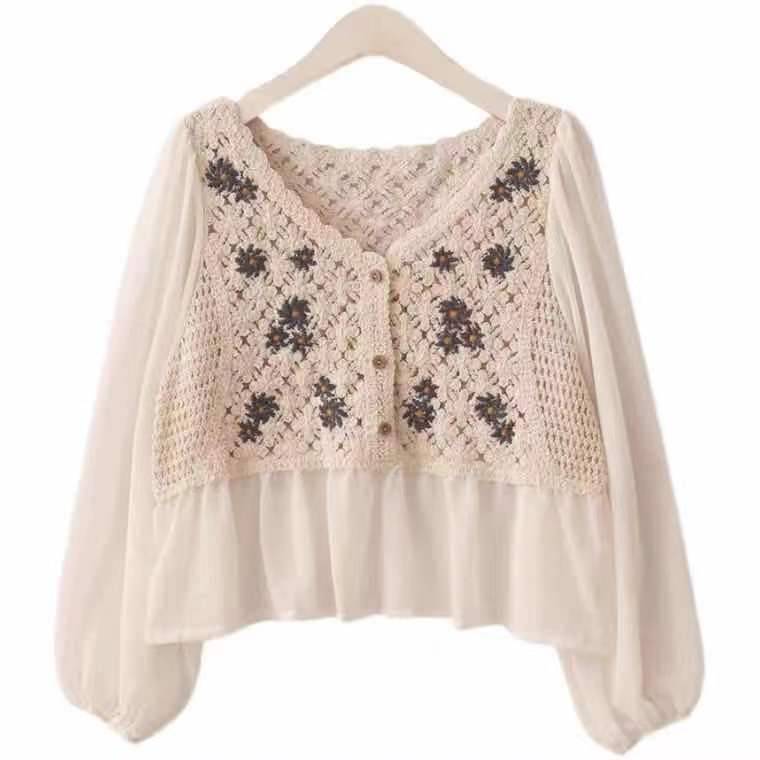 拼接针织雪纺衬衫