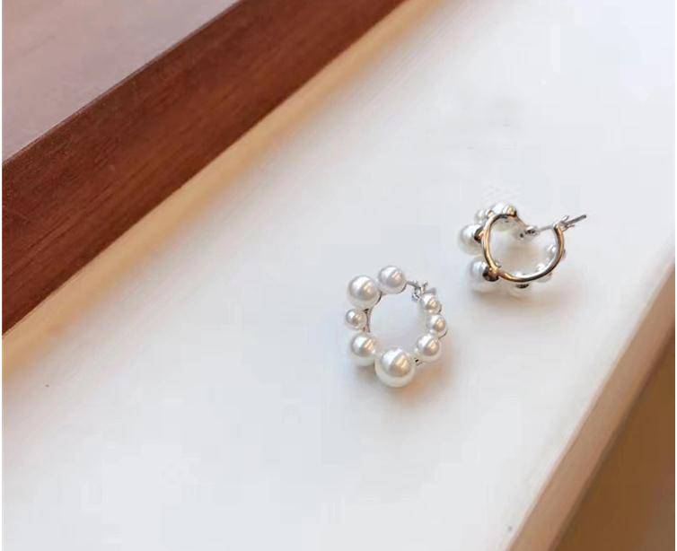 韩国新款耳环 东大门圆形几何珍珠耳环 网红复古设计款珍珠耳钩
