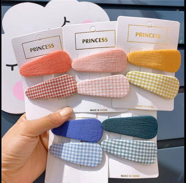韩版秋冬新款儿童格子发夹宝宝亲子款彩色水滴BB夹对装边夹发饰品