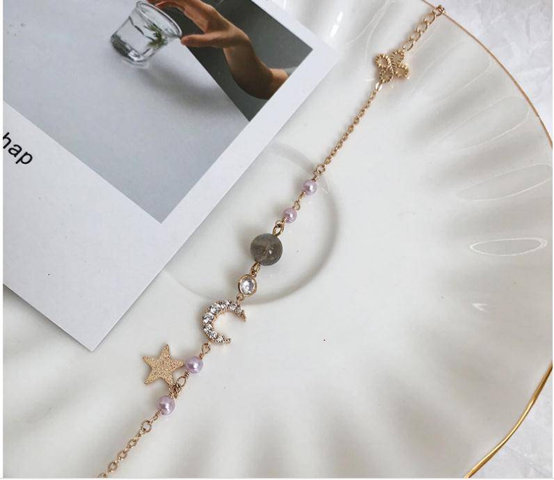 韩国简约珍珠手链女闪光石亚克力手环森系学生星月锆石手饰女