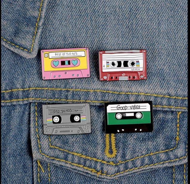 创意跨境欧美胸针 卡通磁带胸花别针 圣诞礼物珐琅高档音乐cd胸针
