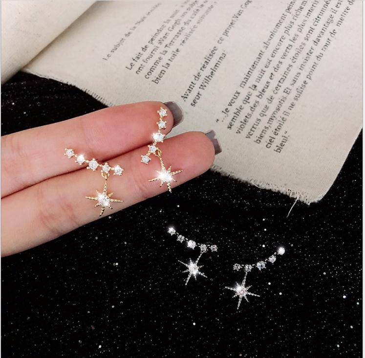 新款韩国抖音简约冷淡风高级感锆石六芒星耳钉女小众银针耳环女
