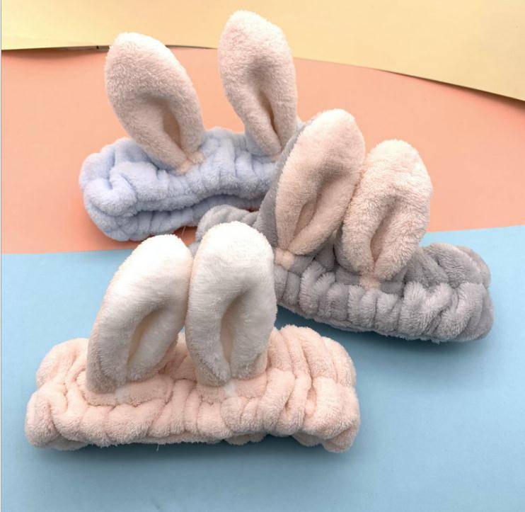 新款兔耳朵珊瑚绒韩版冬毛绒洗脸发带发箍束发带饰品头饰发饰热