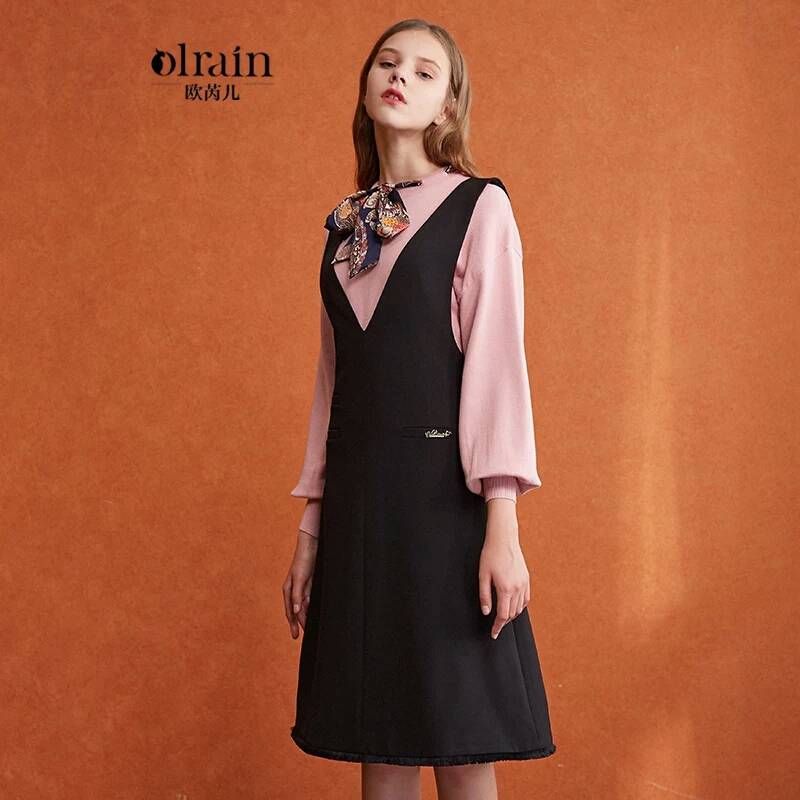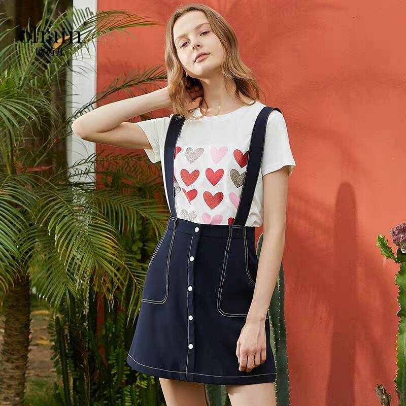 欧芮儿2018新款收腰显瘦百搭吊带单排扣牛仔半身裙女短裙子