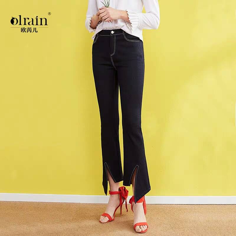 不规则牛仔裤女长裤子新款百搭休闲裤女开叉