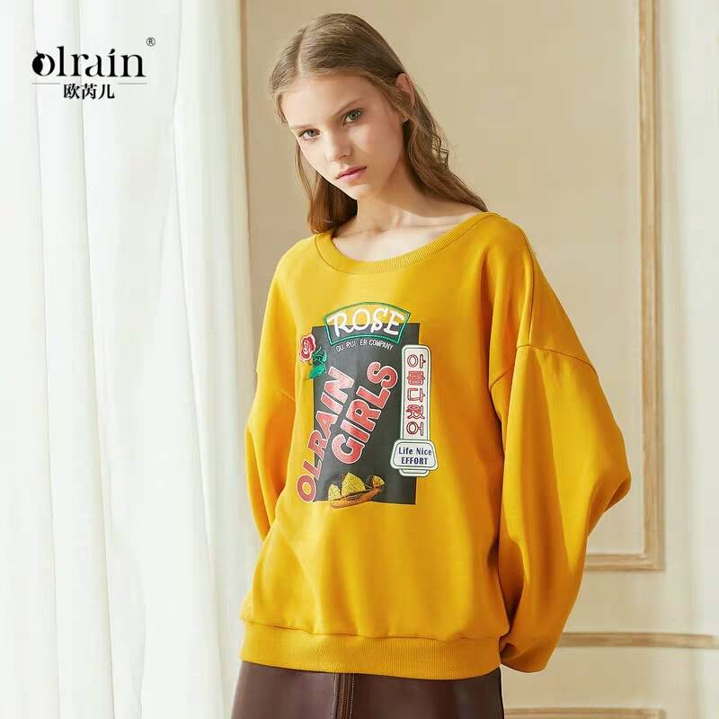 秋新款宽松显瘦黄色字母图案印花长袖卫衣女ulzzang