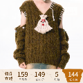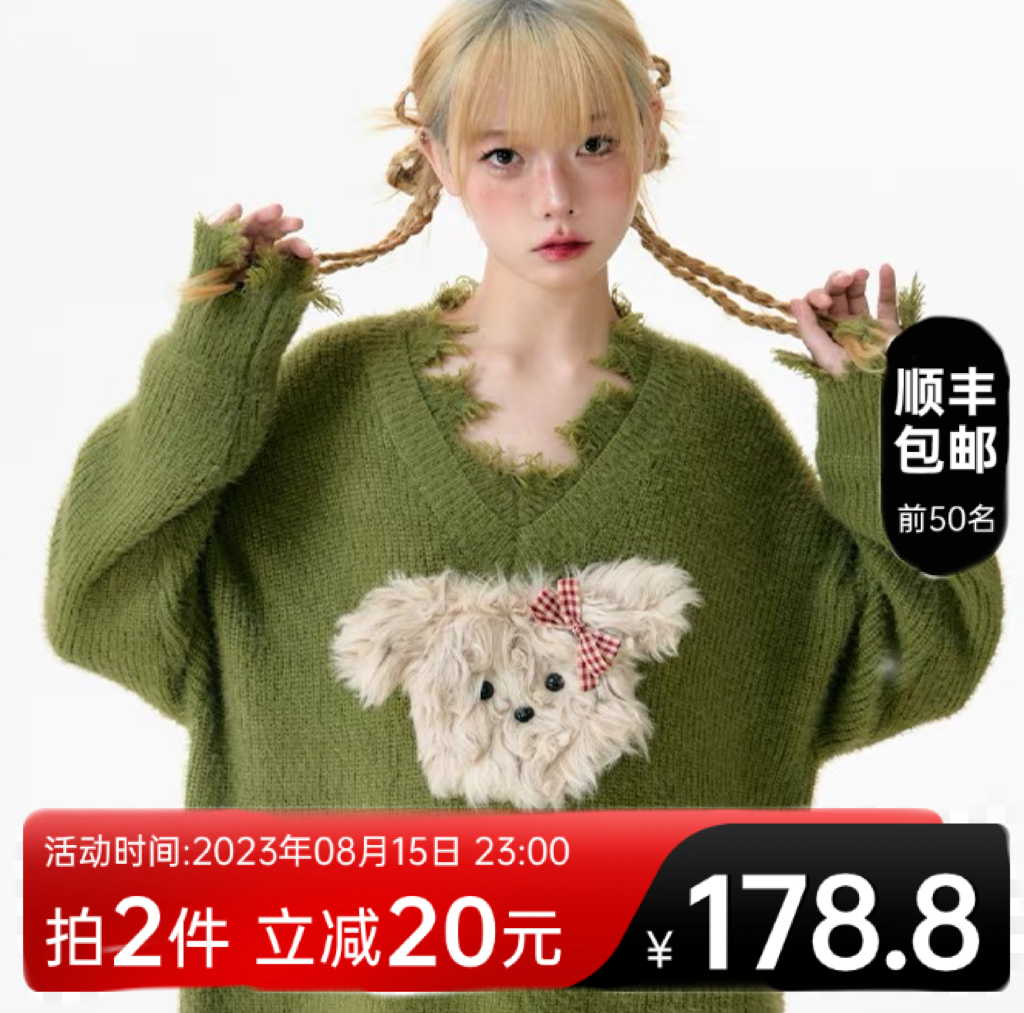 杨二大梦原创慵懒小狗撕边仿貂毛毛衣女秋冬2023新款宽松针织上衣