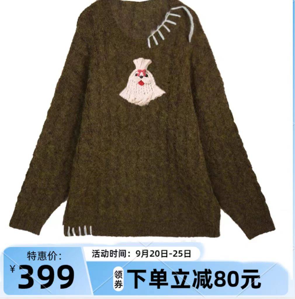 杨二大梦原创针织小狗宽松毛衣秋冬女软糯慵懒风复古秋季新款上衣