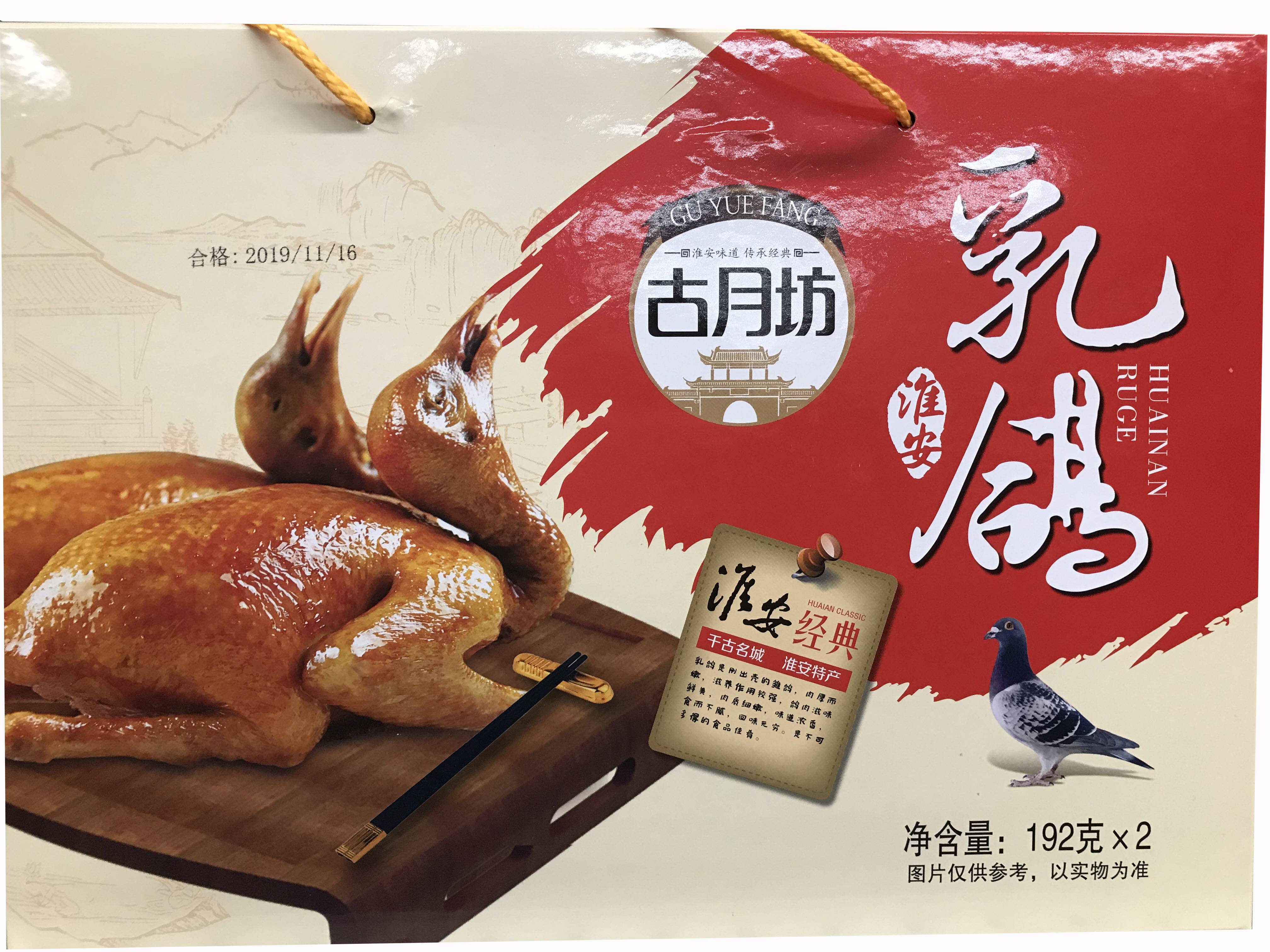 江苏淮安特产 苏粤乳鸽鸽子礼盒装 古月坊乳鸽 风味独特192g*2