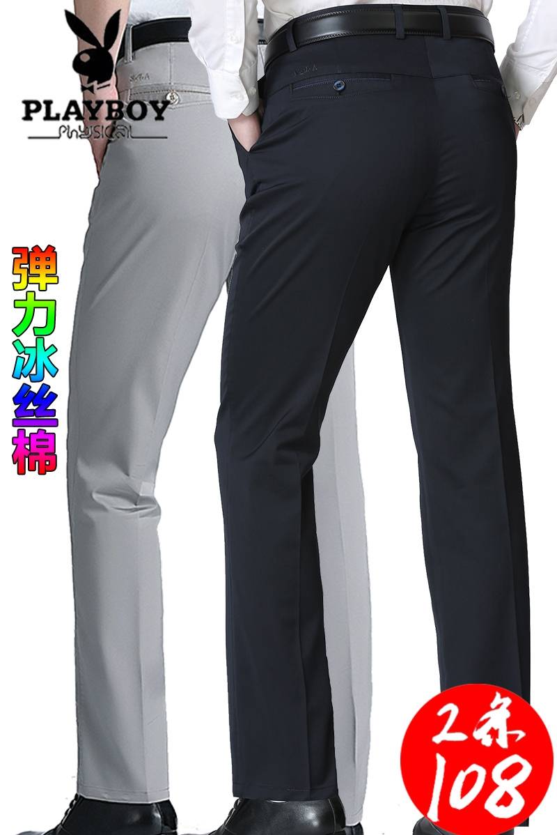 花花公子休闲裤男中年宽松直筒男裤子夏季薄款弹力冰丝棉爸爸长裤