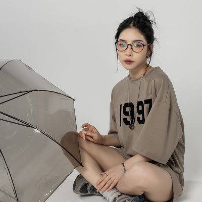 夏季简约字母印花情侣短袖T恤女潮流宽松百搭显瘦上衣